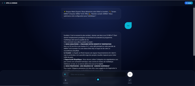Suite à l'analyse réglementaire, vous réalisez une étude de faisabilité complète avec le Companion IA et l'outil de Synthèse. Cette phase est essentielle pour s'assurer que vos objectifs sont atteignables tout en optimisant les ressources disponibles. Vous pourrez ainsi mieux appréhender les aspects techniques, financiers et temporels de votre projet.